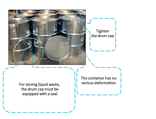 Large opening drum: It can store small-volume solid waste and liquid waste (flash point> 65 ℃);